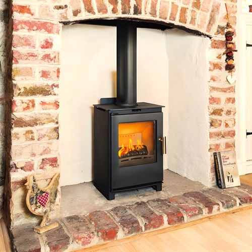 Despite its compact size, the Brue offers impressive versatility with an output range of approximately 3kW to 5kW, allowing you to maintain a comfortable room temperature without excessive heat. As a true multi-fuel appliance, it gives you the flexibility to burn both seasoned wood logs and authorised smokeless fuels, enabling you to choose the most convenient and cost-effective fuel source. The firebox is lined with insulating vermiculite panels, helping to retain heat within the chamber and improve overall combustion efficiency, while the durable cast iron grate ensures long-term reliability and optimal airflow through the fuel.