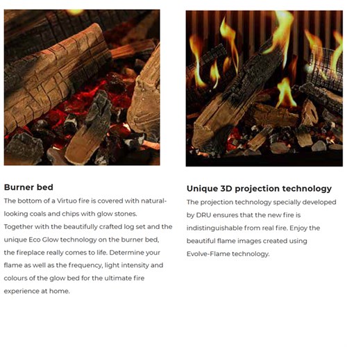 The DRU Virtuo 150/2 Evolve LCD Electric Fire is not a standard electric fire, it is a premium feature appliance designed for homeowners who want cutting-edge technology, exceptional realism and standout design. From its deep, lifelike flames to its two-sided architectural presence, this fire is created to define a room rather than simply occupy it.