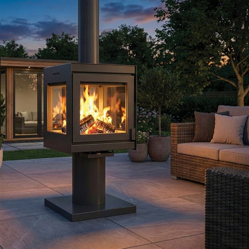 From the moment it’s lit, the Fresco Plus creates a completely different feel outdoors. The design allows you to see the fire from every angle, thanks to its fully glazed, four-sided structure. Whether you’re sat around it with friends or simply enjoying a quiet evening, the flames remain visible from all sides, creating a focal point that naturally brings people together.