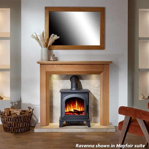 One of its most impressive features is the flame effect display. The Ravenna uses advanced technology to create a highly realistic fire, enhanced with seven flame colour options and seven fuel bed lighting effects, allowing you to customise the look to suit your mood or décor. Supplied with a choice of logs, crystals, slate chips, and black ash, you can create anything from a rustic fireside feel to a sleek contemporary look.