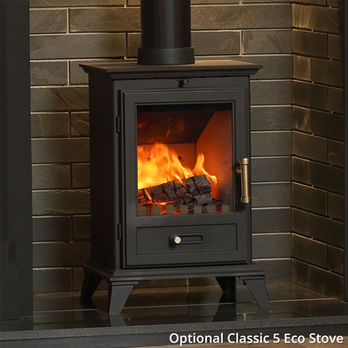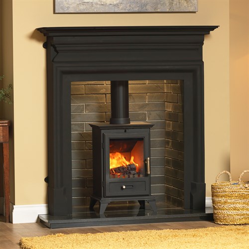 One of the key advantages of the Gallery Palmerston 48" Cast Iron Fireplace is its adaptability. The surround can be paired with a variety of fireplace interiors and finishes to achieve the look that best suits your home. As illustrated in the images, it works particularly well when combined with Gallery Porcelain Slate Brick Bond Chamber Panels, a Classic 5 Eco Multi-Fuel Stove, and a slabbed granite hearth which are not included in this offer but are listed separately on our website. This configuration creates a contemporary inglenook style fireplace that contrasts the traditional cast iron mantel with the clean lines of a modern stove.