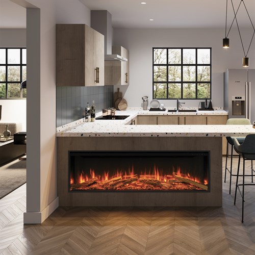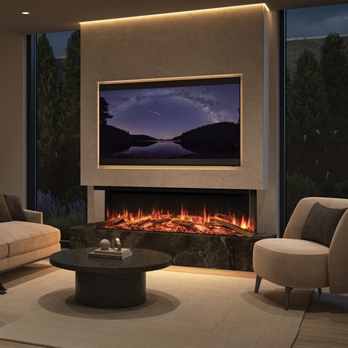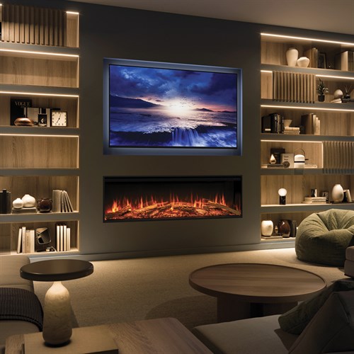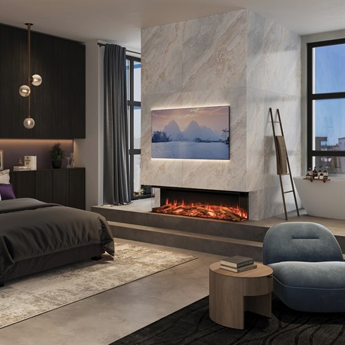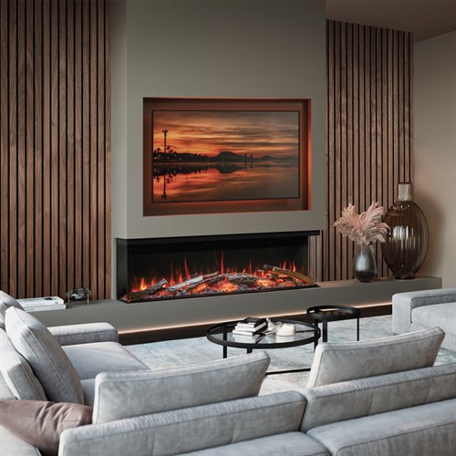 The Avita 160RW is especially suited to media wall installations, pairing perfectly with TVs from 50" to 80", and offering total flexibility in how it is fitted. Homeowners can choose between single-sided, corner or full three-sided panoramic setups, all from the same fire, making it ideal for bespoke builds.