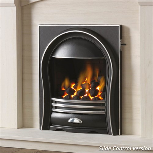 Ease of use is at the heart of the Annabelle. Manual controls are discreetly hidden behind the fret drawer for neatness, while the full-depth version can also be upgraded to a Fingerslide control for added convenience, allowing you to light and adjust the fire using a lever positioned at the top of the fascia.