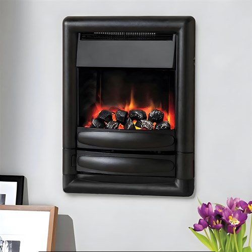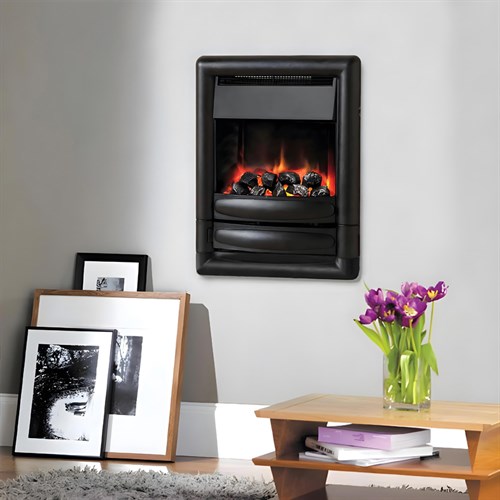 To complement the flame effect further, you can choose between a high-definition coal or log fuel bed, each illuminated to enhance depth and realism. Thanks to its slim 75mm inset depth, the Carmen fits neatly into most wall cavities, creating a premium built-in finish without the need for a traditional flue or chimney system.