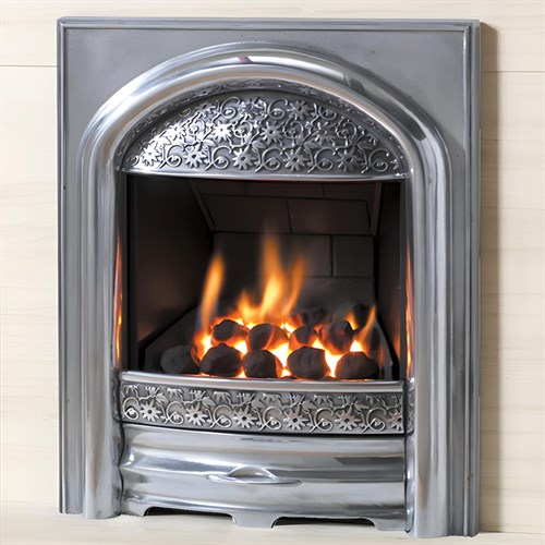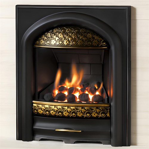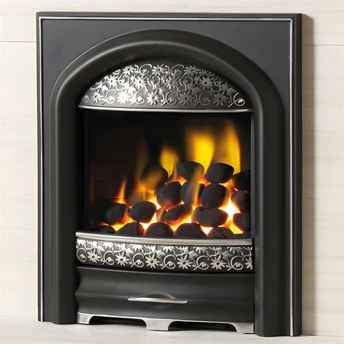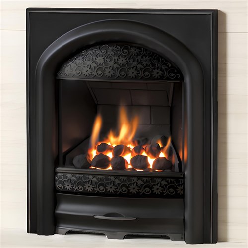 The PureGlow Juliet Radiant Inset Gas Fire brings a beautifully refined aesthetic to any fireplace, combining traditional cast-iron artistry with a gentle, romantic style. Designed to stand out without overpowering your décor, the Juliet features a distinctive cast fascia enriched with delicately moulded Passion Flower detailing, giving the fire a soft, graceful character that feels equally at home in modern and classic interiors.