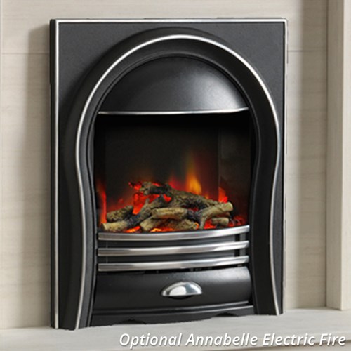 The suite includes a matching back panel with a standard inset cut-out and a 3-inch rebate, making it compatible with virtually all inset gas and electric fires. Whether you prefer the dramatic effect of a real-flame gas fire or the low-maintenance ambience of an electric model, the Kingsford has been designed to accommodate your preferred heating choice with ease. The fireplace shown in the images features the PureGlow Annabelle Electric Fire, which highlights how beautifully the suite pairs with both contemporary and traditionally styled appliances. Please note that the Annabelle fire is not included but can be purchased separately.