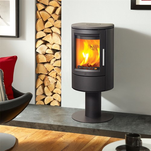 Though the largest in the range at 1100mm high, Varde Ovne Aura 11 wood burning stove has an elegant plinth for a light and airy look