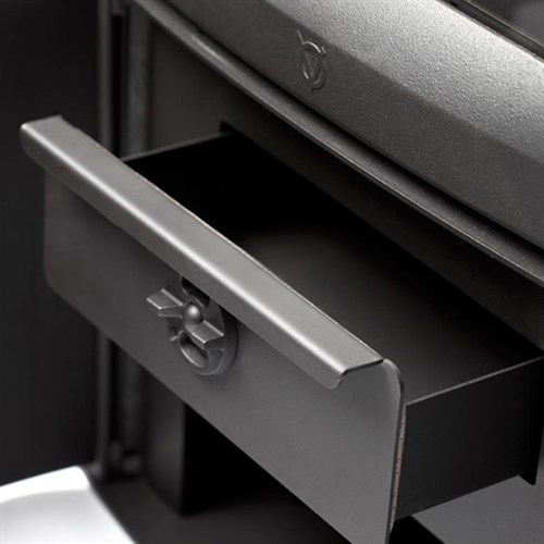 The Aura 11 features high-quality cast iron doors, top plate, grate and base, alongside integrated log store and options for both top and rear exit