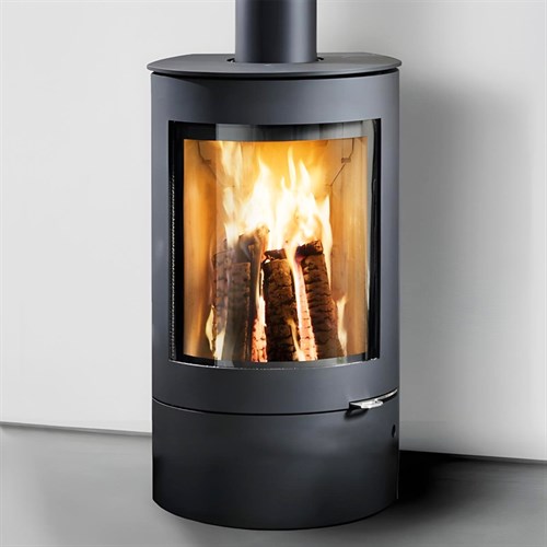 Day-to-day usability is enhanced by an effective airwash system, which helps keep the glass clear by directing airflow across its inner surface. This reduces soot build-up and preserves an uninterrupted view of the flames. Design details such as the flush stainless steel handle and smooth anthracite finish reinforce the stove’s minimalist Scandinavian styling.