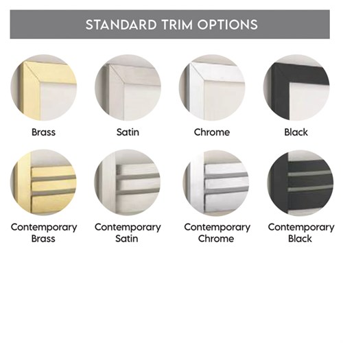 The Pesaro HE Slimline Gas Fire is available with a wide selection of trims and fascia finishes, allowing you to tailor the look to match your interior. Whether your style is clean and contemporary or more traditional and classic, there’s a design option to suit your space - from understated modern metals to timeless black and brass combinations.